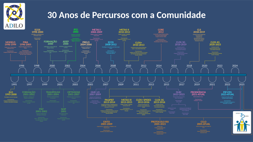 Ao longo dos anos, a atuação da Adilo tem-se pautado, sobretudo, por uma lógica assente em projetos. Apesar das dificuldades encontradas, valorizamos o caráter estimulante que estes oferecem, ao possibilitarem a experimentação, a inovação e a expressão criativa.